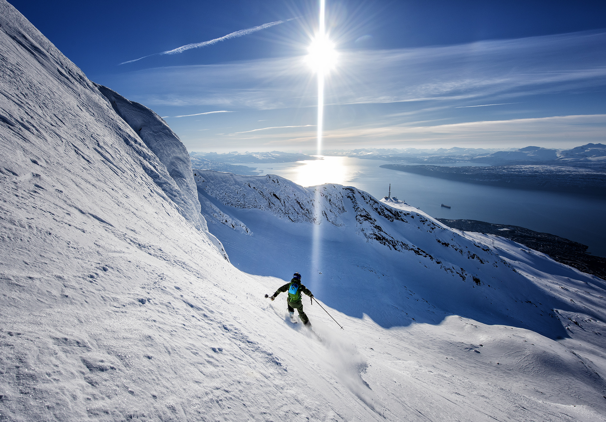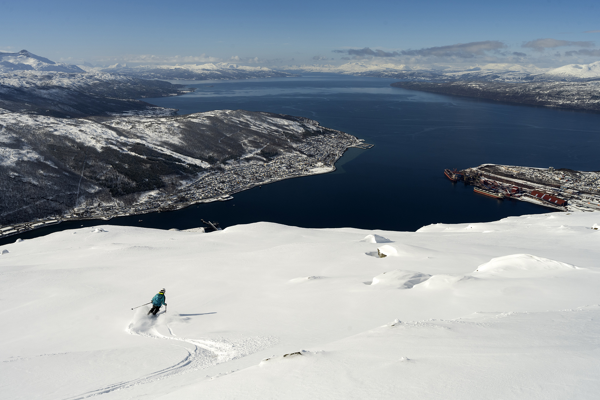 Ski from mountain to fjord with panoramic views